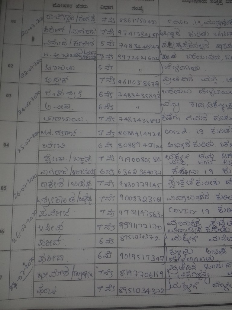 ದೂರವಾಣಿ ಮೂಲಕ ಸಂಪರ್ಕಿಸಿದ ವಿದ್ಯಾರ್ಥಿ /ಪೋಷಕರ ಹೆಸರು