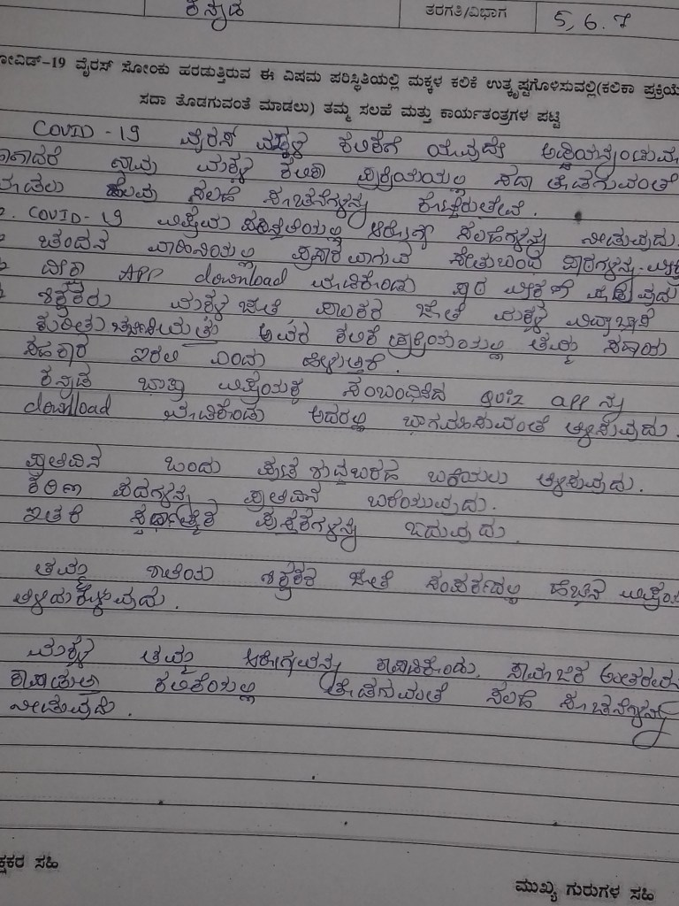 COVID-19 ವೈರಸ್ ಸೋಂಕು ಹರಡುತ್ತಿರುವ ಈ ಪರಿಸ್ಥಿತಿಯಲ್ಲಿ ಮಕ್ಕಳ ಕಲಿಕಾ ಪ್ರಕ್ರಿಯೆಯಲ್ಲಿ ಸದಾ ತೊಡಗುವಂತೆ ಶಿಕ್ಷಕರ ಸಲಹೆಗಳು:-